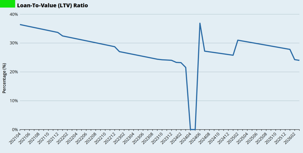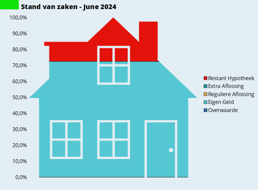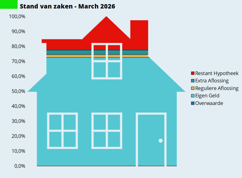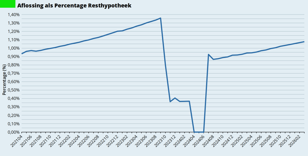De totale aflossing bedraagt inmiddels 63,3 procent van de oorspronkelijke hypotheek (najaar 2025: 60,9%). En de huidige loan-to-value ratio (LTV) bedraagt 24,1 procent.
