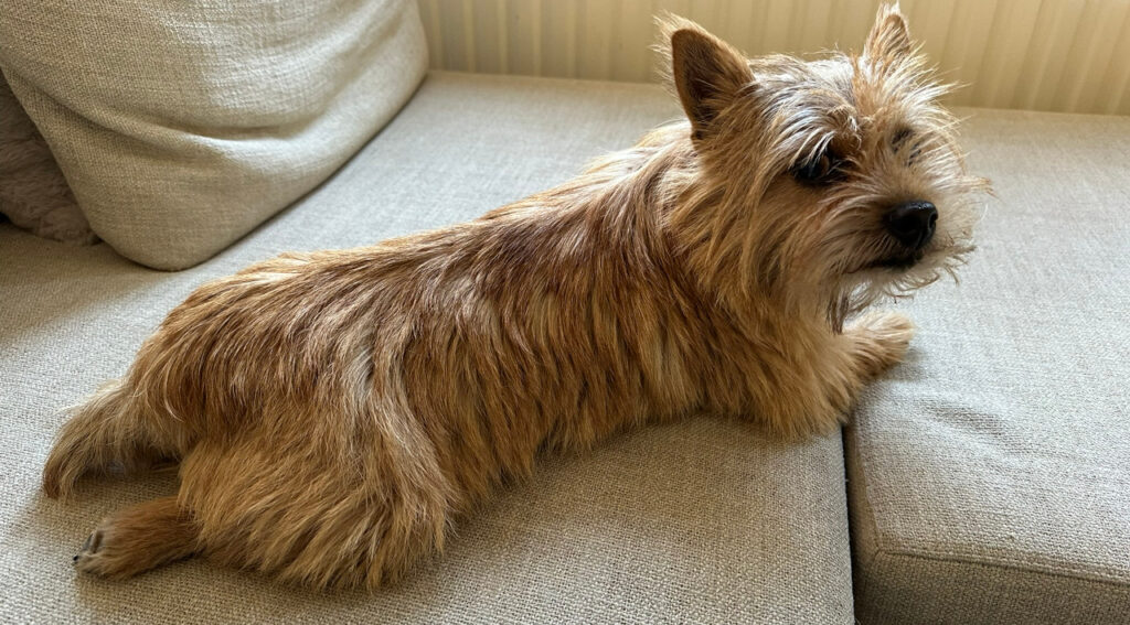 Vriendin is opgegroeid met honden, en volgens haar is Doggy het eerste hondje dat ze meemaakt met een ochtendhumeur. We vermoeden dat het met haar hartproblemen te maken heeft dat ze ’s ochtends wat traag opstart. Nadat ze haar medicijnen gekregen heeft verandert ze overigens in een enorme stuiterbal, die een kwartier rond raast en over ons heen klautert voordat ze rustig tussen ons in gaat liggen.