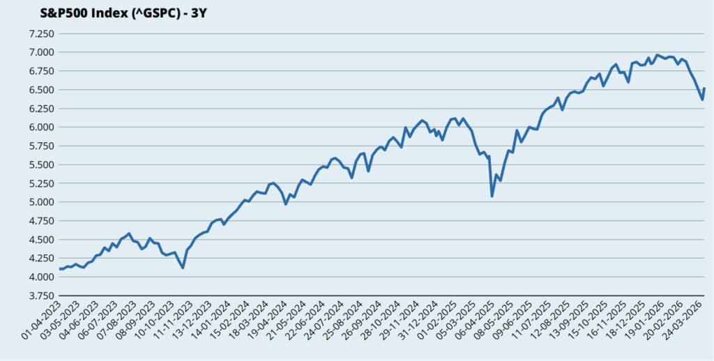 De Amerikaanse S&P500-index kwam in januari goed uit de startblokken, en mijn portefeuille steeg lekker mee. Maar dat vlakte al snel af, en het grootste deel van januari en februari was de S&P500 een vlakke lijn. Toen Israël en de Verenigde Staten eind februari Iran aanvielen werd de daling ingezet. Elke keer als je denkt dat de chaos in de wereld niet meer groter kan worden dan lukt het ze toch weer.
