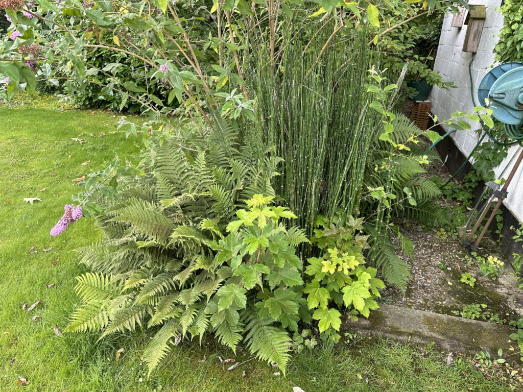 We hebben een grote tuin, die door de vorige bewoners over een periode van ruim 30 jaar opgebouwd is. En dan sluipt er wel eens een foutje in. Eén van de foutjes hier heet bamboe. Veel mensen houden ervan. Wij niet. Maar we hebben wel twee ‘bamboe kolonies’ in onze tuin staan.