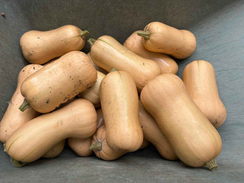 Voor de nacht van 1 op 2 oktober werd er vorst aan de grond voorspeld. Ik haastte me dus om de uien te oogsten. En legde ze een paar weken te drogen onder onze carport naast de schuur. Ook oogstte ik nog eens 15 flespompoenen, we hebben er in totaal 32 geoogst van twee planten.