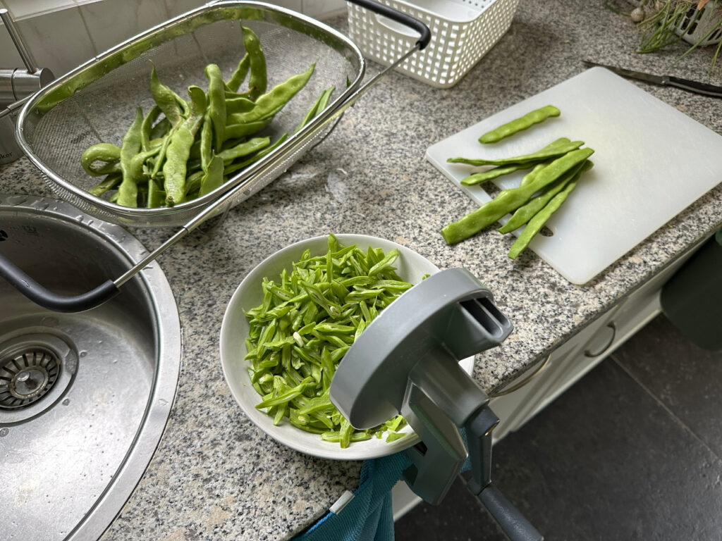 Verder oogstte ik de laatste snijbonen, er gingen nog twee porties de diepvries in. Fijngesneden in de snijbonenmolen die Vriendin van haar moeder cadeau kreeg. We gebruikten de laatste bosuien in een heerlijke huisgemaakte flammkuchen. De laatste broccoli werd geoogst en in de diepvries gestopt. En we vonden zomaar een handvol rijpe vijgen aan onze vijgenboom. Die vol hangt met vruchten, maar weinig rijpe vijgen had.
